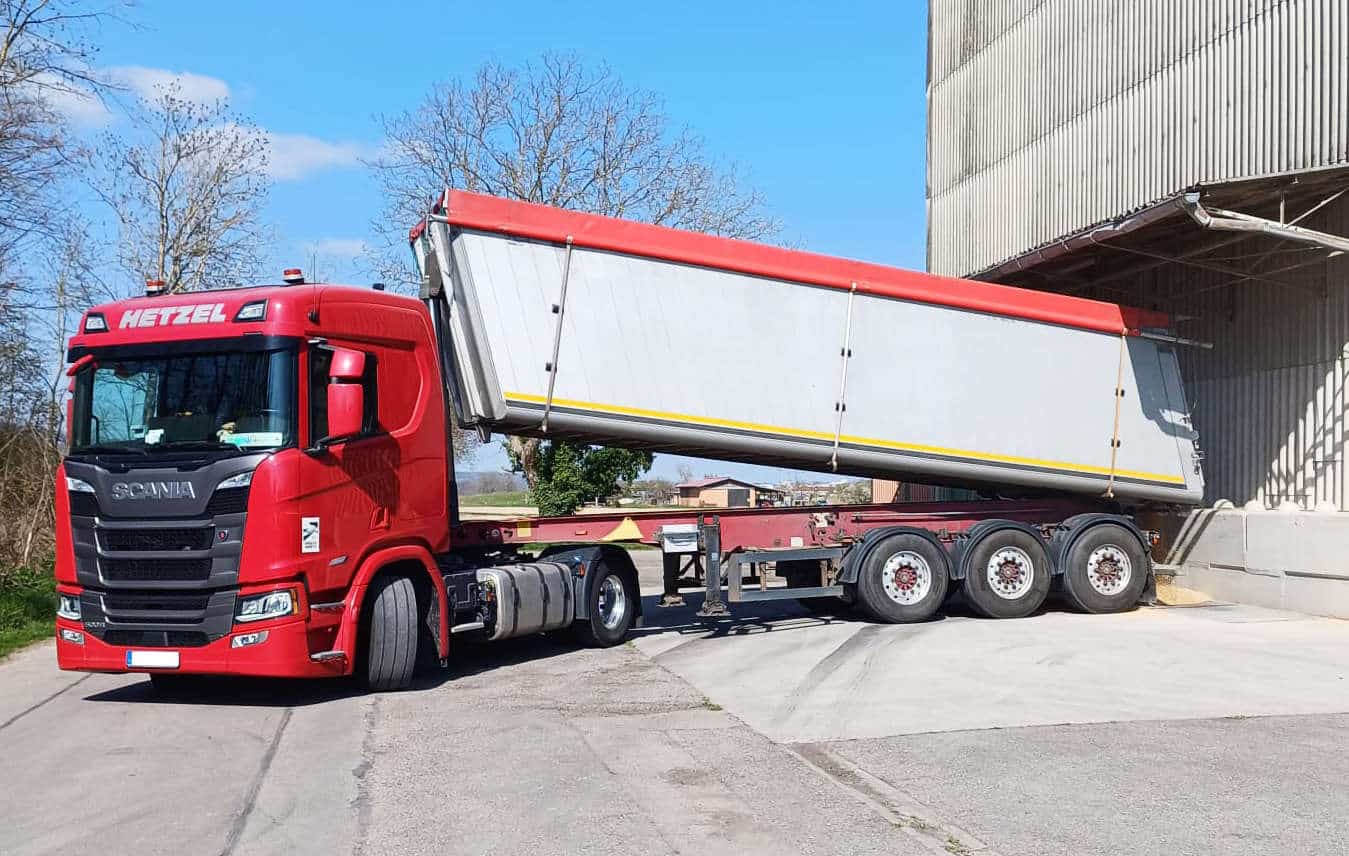 Mit unserem nach GMP+ zertifizierten Aluminium-Kipper übernehmen wir den sicheren und sauberen Transport von Futtermitteln und Dünger in der Region.