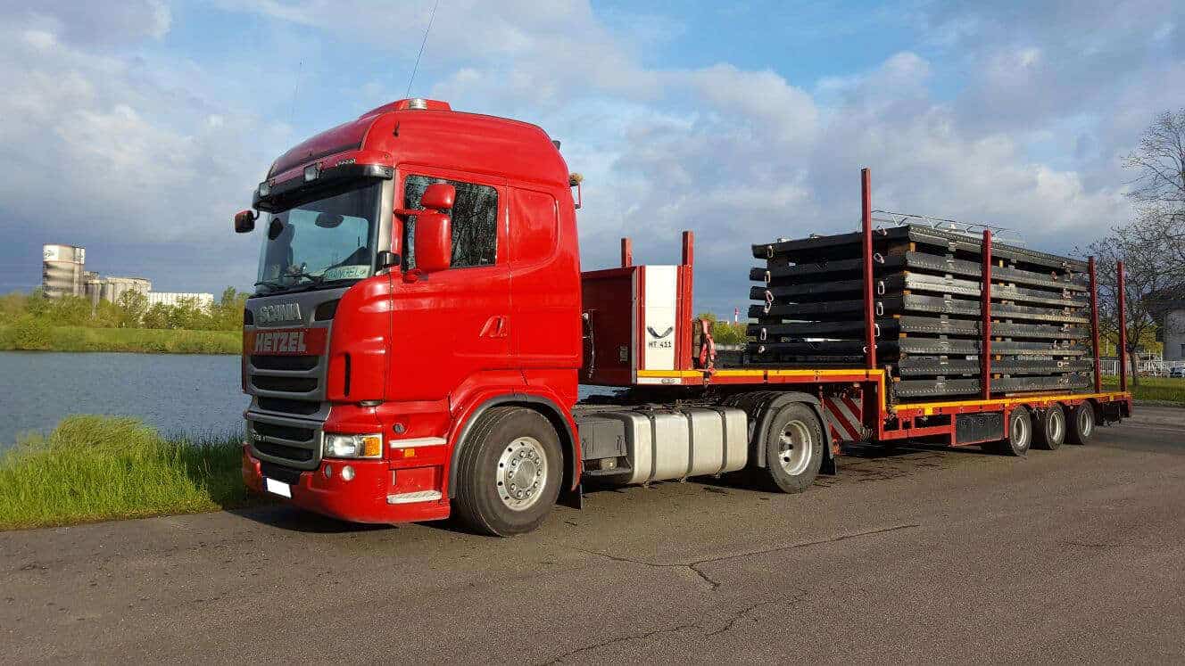 Ob Baumaschinen, Betonfertigteile oder übergroße Komponenten – wir haben das passende Fahrzeug für Ihre Anforderungen.